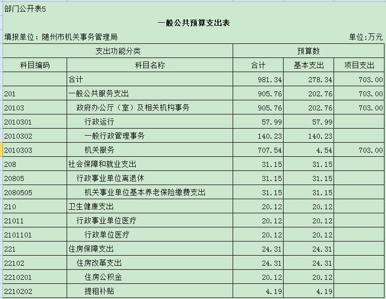 第三部分 隨州市機關事務管理局2019年部門預算表