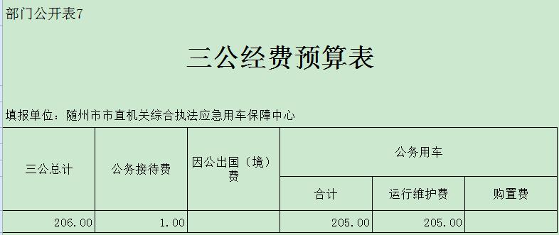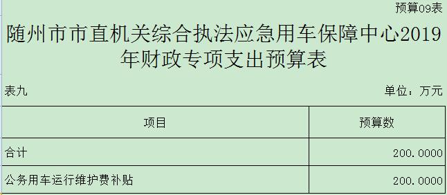 三、市直機關綜合執法應急用車保障中心2019年部門預算公開表