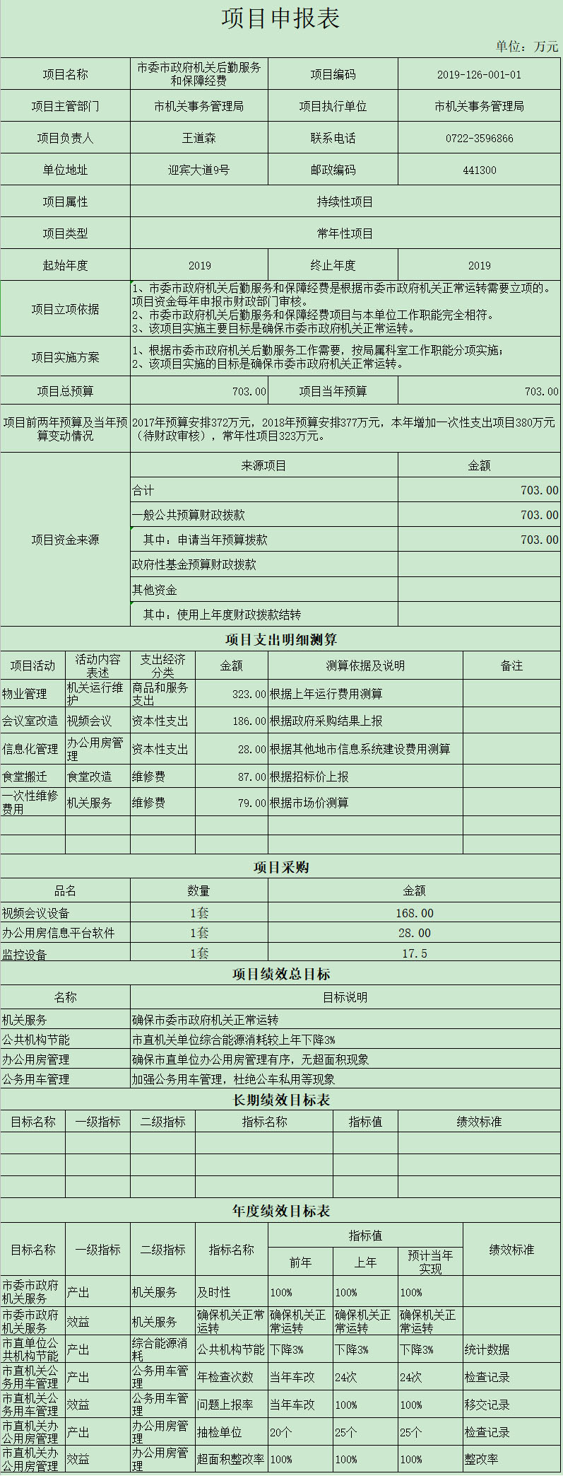 4、項目實施過程中存在不可預見性的新增服務項目,主要是市委市政府臨時安排的服務性項目及市直部分有獨立辦公樓的單位存在大型設備老化及修繕項目,資金無法保證。針對這些情況擬與財政部門協商,每年安排不可預見性支出專項資金,由財政部門審核撥付。