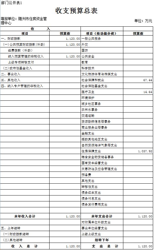 一、部門收支預算總表