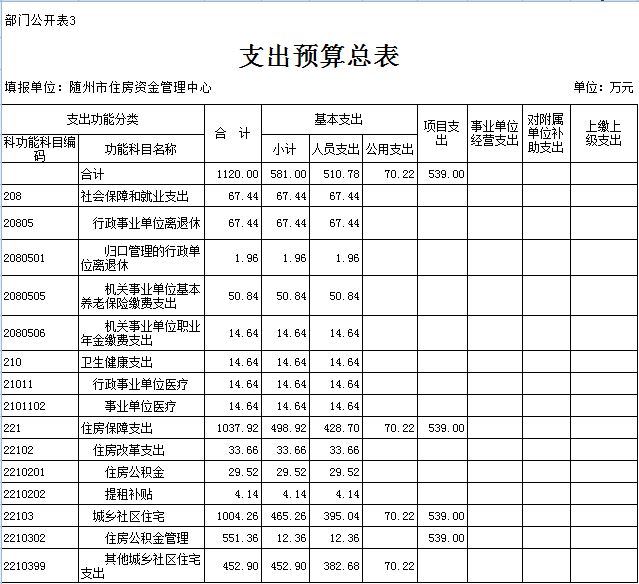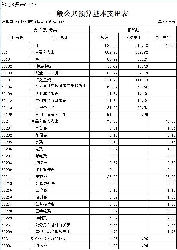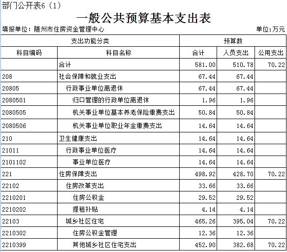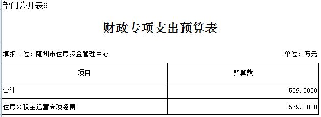 第三部分 隨州住房公積金管理中心2019年部門預算表