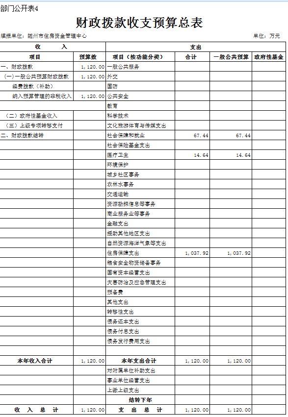 四、財政撥款收支總表