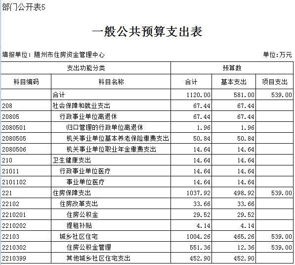五、一般公共預算支出表