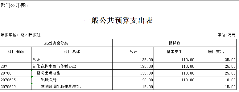 2019年隨州日報社財政經費撥款支出預算總額為135萬元,與上年數額相同。其中人員經費110萬元,項目經費25萬元。