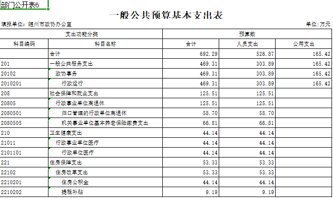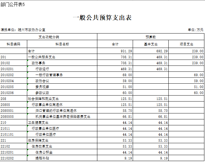 第三部分 隨州市政協(xié)辦公室2019年部門(mén)預(yù)算表