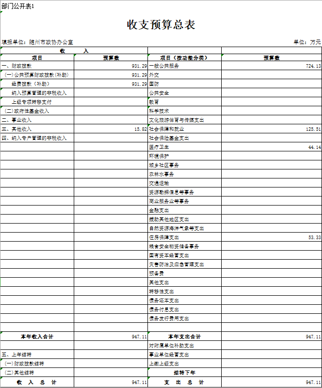 一、部門(mén)收支預(yù)算總表