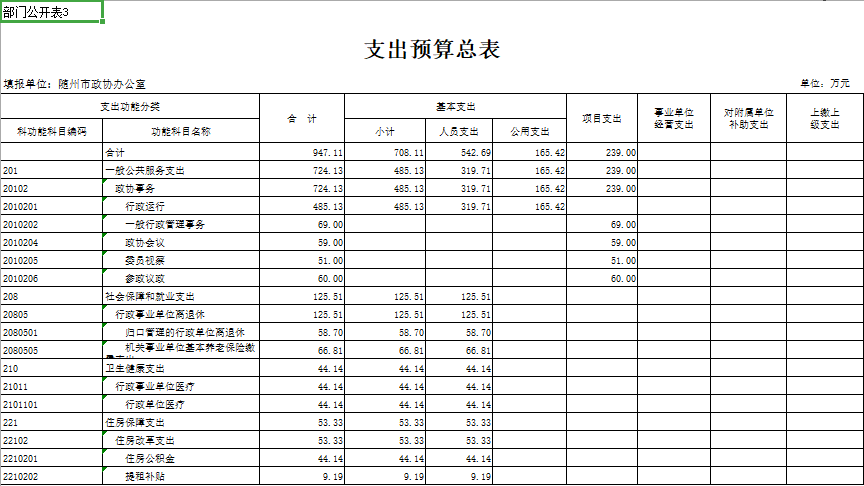 三、部門(mén)支出總表