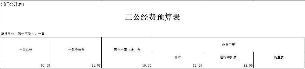 2019年市政協(xié)辦公室“三公”經(jīng)費(fèi)預(yù)算68.58萬(wàn)元,比上年增加18.92萬(wàn)元,增加38.1%,原因是2018年未從公用經(jīng)費(fèi)中安排公車(chē)運(yùn)行維護(hù)經(jīng)費(fèi)。其中:
