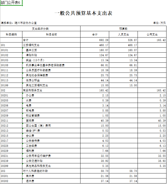 六、一般公共預(yù)算基本支出表