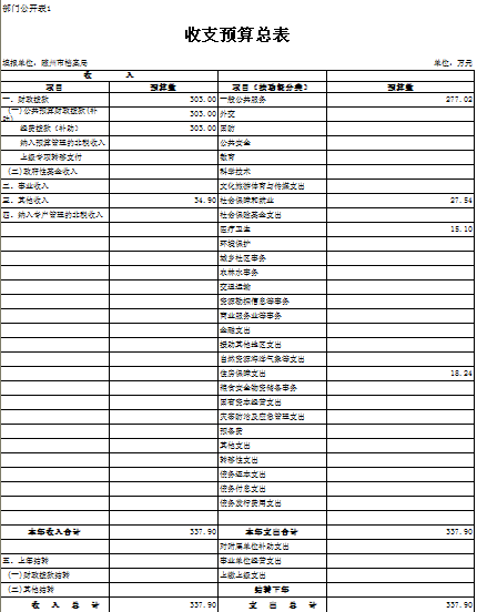 一、部門收支預算總表