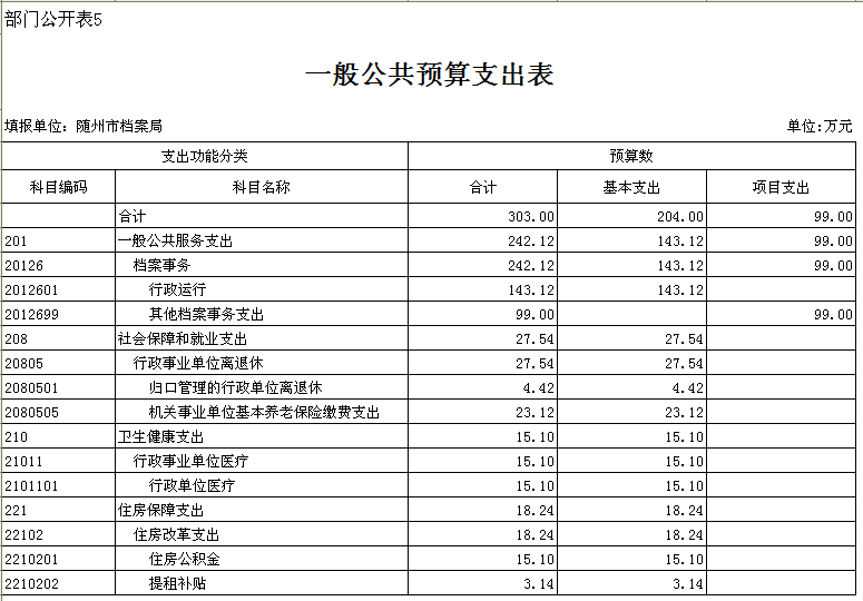五、一般公共預算支出表