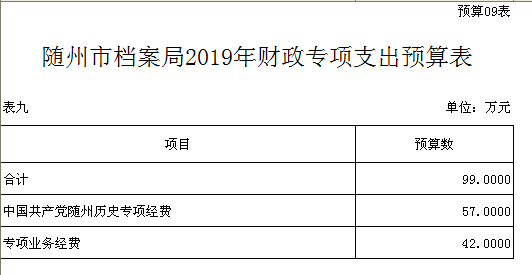 隨州市檔案局2019年部門預算