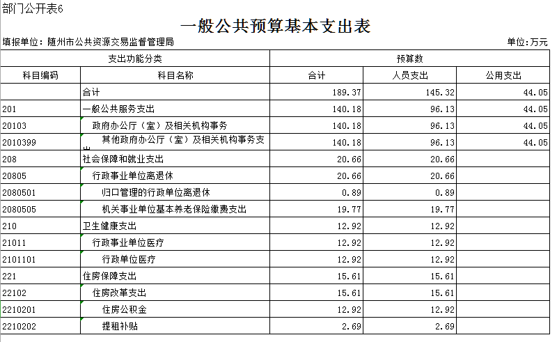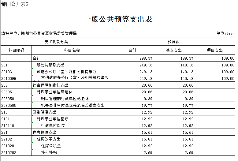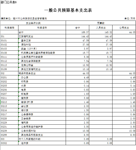 ??第三部分??隨州市公共資源監督管理局2019年部門預算表