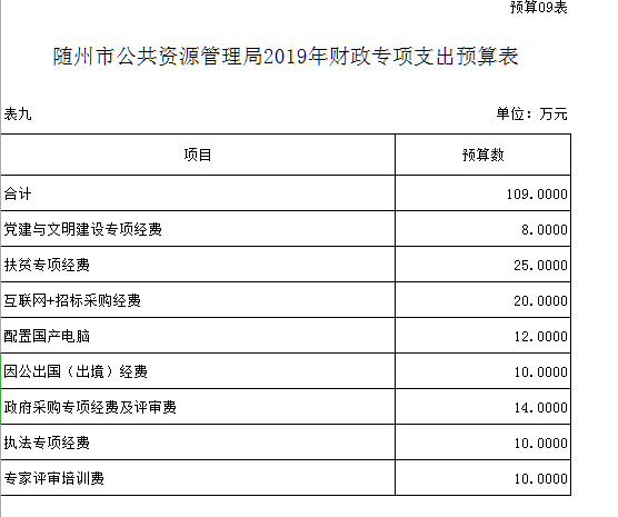 第三部分??隨州市公共資源管理局2019年部門預算表