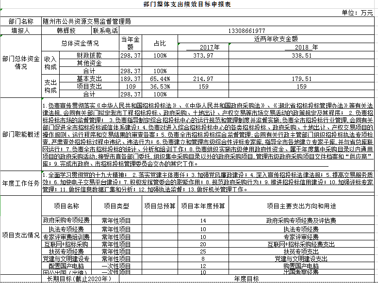 ??第二部分??隨州市公共資源交易監督管理局2019年部門預算情況說明