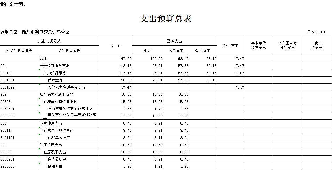 2019年支出預(yù)算147.77萬元,其中:人員支出92.15萬元,與2018年相比增加13.73萬元,增長17.5%,主要原因是新遴選1名公務(wù)員,增人增資;公用支出38.15萬元,比2018年增長0.86萬元,增長2%,主要原因是機(jī)構(gòu)改革,工作任務(wù)量加大導(dǎo)致。項目支出17.47萬元,比2018年增加3.47萬元,增長24.7%,主要原因是行政機(jī)構(gòu)改革、事業(yè)單位分類改革業(yè)務(wù)量增長所致。