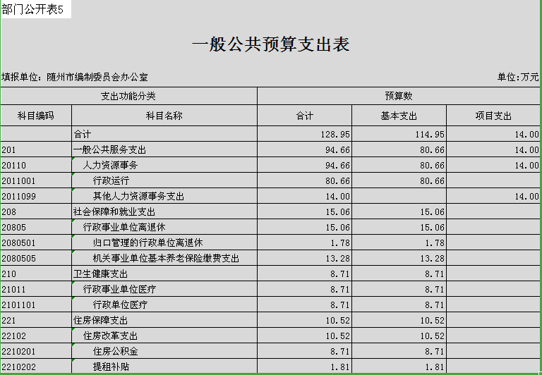 2019年,財政撥款128.95萬元,比2018年增長16.26萬元,同比增長14.4%,主要原因是因為人員增加,增人增資。其中,一般公共服務(wù)94.66萬元,比2018年增加9.12萬元,增長10.6%,主要原因是因為業(yè)務(wù)增加;社會保障和就業(yè)15.06萬元,比2018年增加3.17萬元,增長26.6%,主要是因為人員增加、工資調(diào)標(biāo)等;醫(yī)療衛(wèi)生8.71萬元,比2018年增長2.83萬元,增長48%,主要原因是人員增加,工資調(diào)整;住房保障支出10.52萬元,比2018年增長1.14萬元,增長12.15%,主要原因是人員增加。