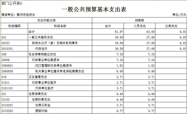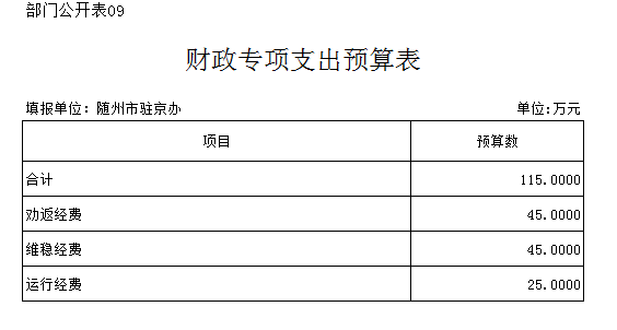 第三部分隨州市人民政府駐北京辦事處2019年部門預算表