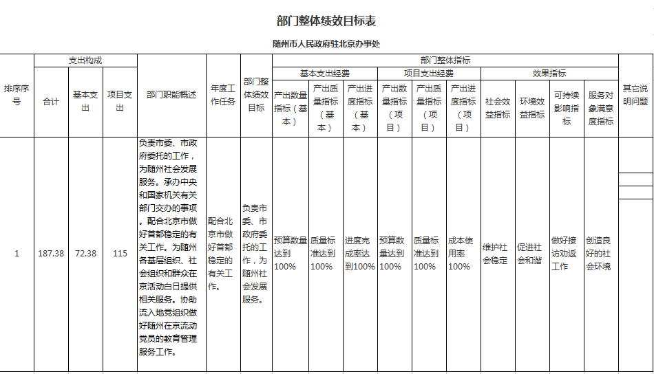 第四部分 隨州市人民政府駐北京辦事處2019年預算績效情況