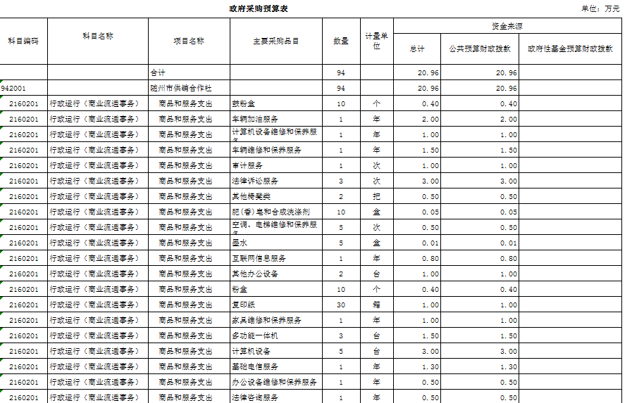 政府采購總額26.96萬元,分別為政府采購貨物預算20.96萬元、政府購買服務預算6萬元;較上年預算36.95萬元減少9.99萬元,減幅27.04%,主要原因:2019年購置應急公務用車一輛。