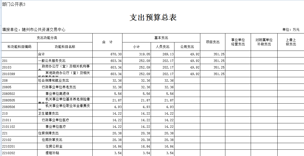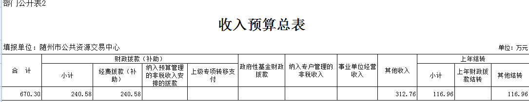 第三部分隨州市公共資源交易中心2020年部門預算表
