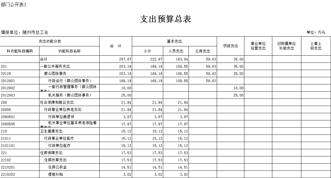 本年部門支出預算總額257.67萬元,其中:行政運行(群眾團體事務)預算金額168.18萬元(其中人員支出108.55萬元、公用支出59.63萬元)、一般行政管理事務(群眾團體事務)預算項目支出金額10.00萬元、行政單位離退休預算金額3.97萬元、機關事業單位基本養老保險繳費預算金額17.87萬元、行政單位醫療預算人員支出金額15.12萬元、住房公積金14.51萬元、提租補貼3.02萬元。。較上年預算安排增加32.46萬元,比上年預算安排增加14.41%,主要原因為增加了財政撥款基本支出的人員經費。