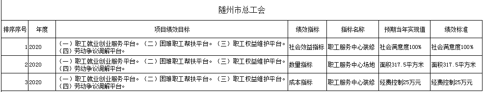 2、本部門重點項目(職工服務中心裝修經費)績效目標表: