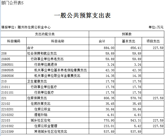 第三部分 隨州市住房公積金中心2020年部門預算表