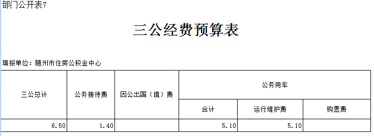 2020年隨州市住房公積金中心“三公”經(jīng)費年初預算安排6.50萬元,比上年減少2.53萬元、減少28.02%,主要原因是減少了公務(wù)用車運行維護費的支出。