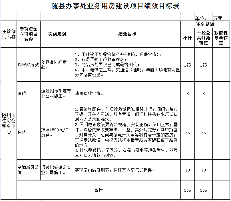 隨州市住房公積金中心共有辦公用房384平方米、業(yè)務(wù)用房3280平方米,執(zhí)法執(zhí)勤用車2輛,通用設(shè)備374臺。單位價值50萬元以上的通用設(shè)備0臺(套),單位價值100萬元以上專用設(shè)備0臺(套)。