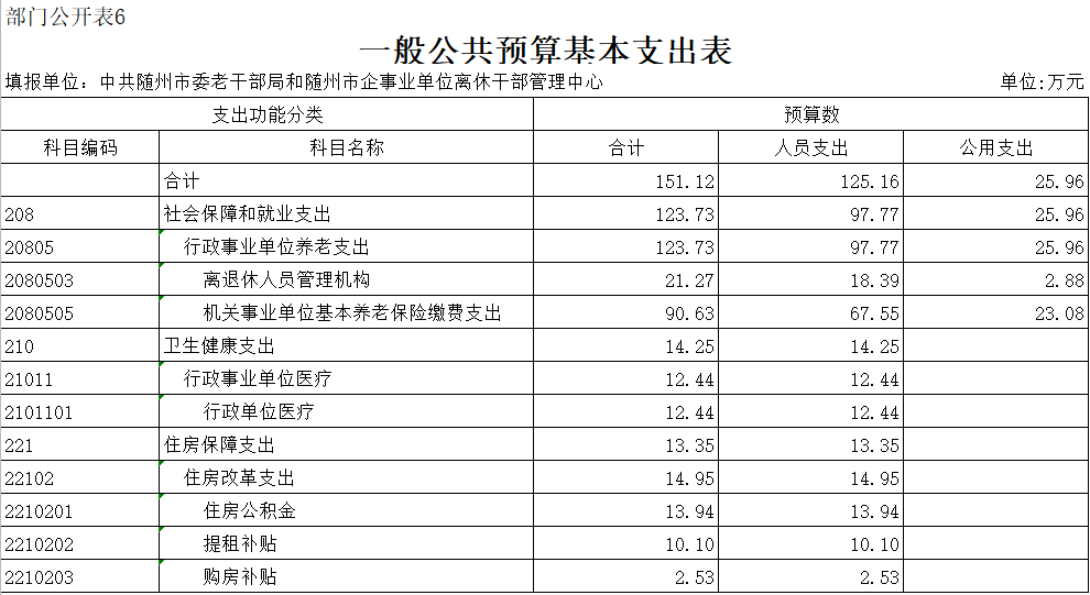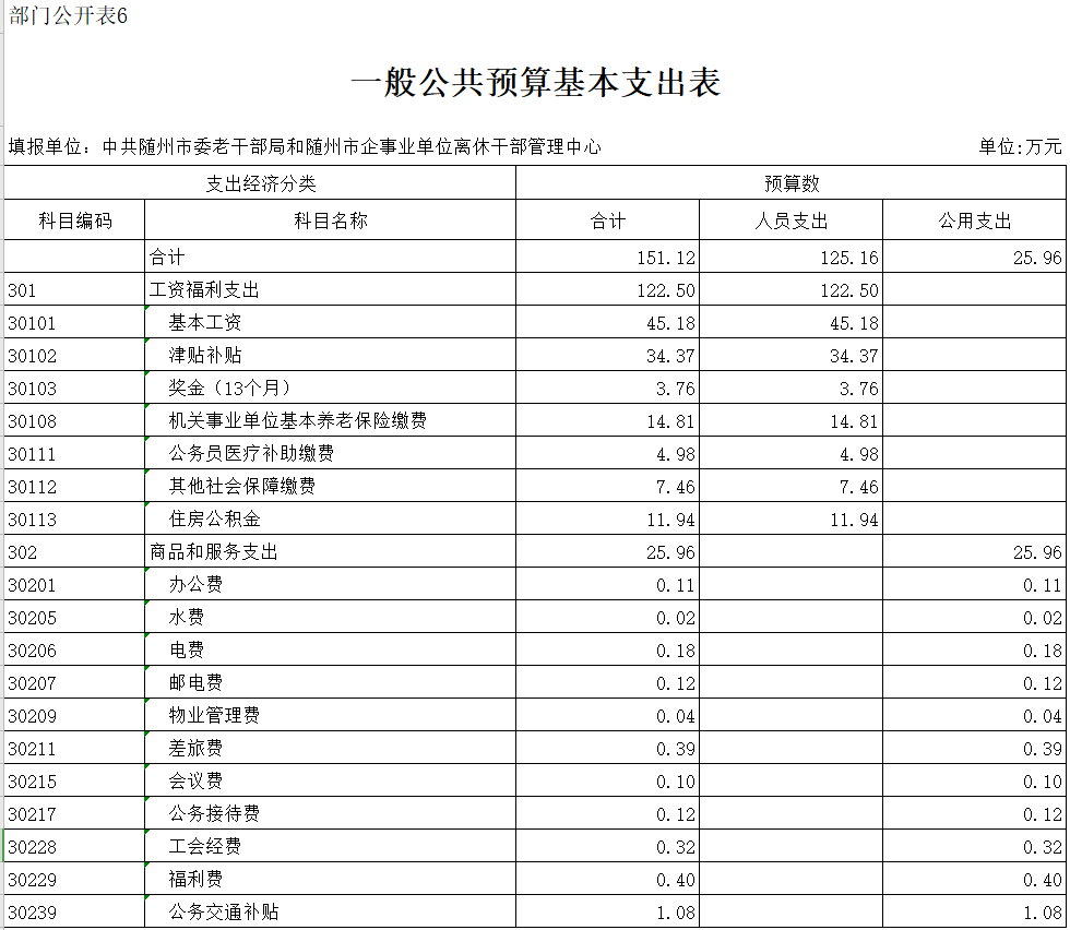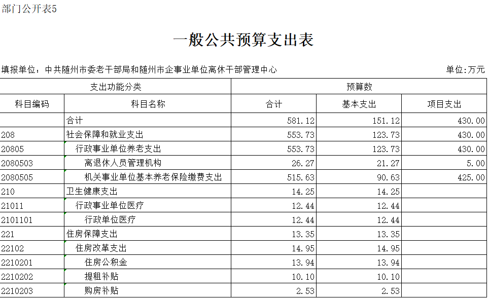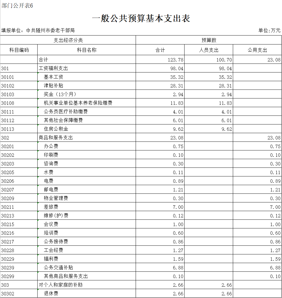 ??第三部分??中共隨州市委老干部局2020年部門預算表
