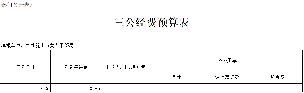 2、隨州市委老干部局(機關)2020年“三公”經費年初預算安排0.86萬元,與上年相比增加0.45萬元,增幅52.33%。其中: