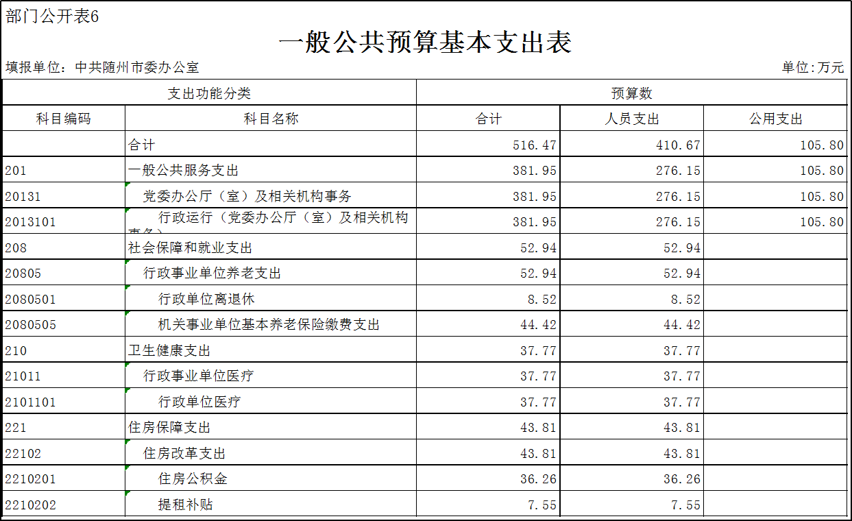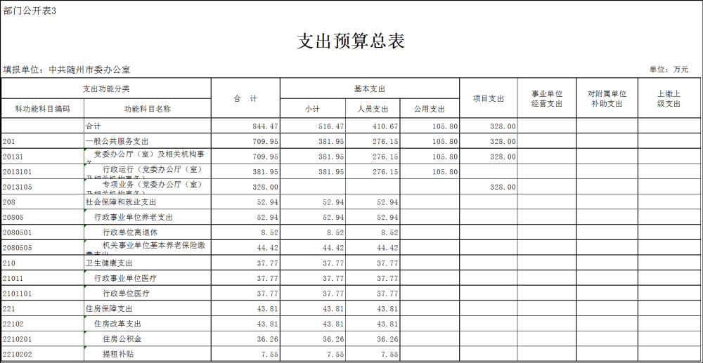 第三部分 中共隨州市委辦公室2020年部門預算表