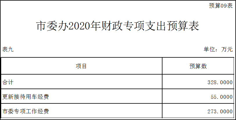 (二)支出預算安排情況:2020年支出預算總額為844.47萬元(其中按功能分類:一般公共服務支出709.95萬元,社會保障就業支出552.94萬元,醫療衛生支出37.77萬元,住房保障支出43.81萬元),較上年支出增加324.73萬元,增加62%,增加的主要用于市委的接待工作經費支出及更新一臺接待用大巴車輛等。