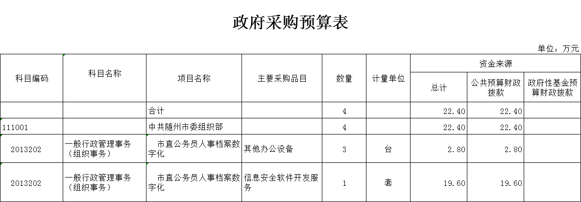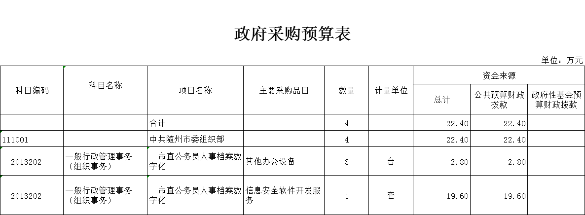 2020年我部按照統一要求,預計采購信息安全軟件開發軟件1套,金額19.6萬元;辦公電腦2臺,金額1萬元;掃描儀1臺,金額1.8萬元,合計22.4萬元,比上年增加12.4萬元,增加124%。增加的主要原因是按照公務員檔案數字化工作要求購置辦公設備。部門匯總(含直屬單位)政府采購情況和組織部本級一致。
