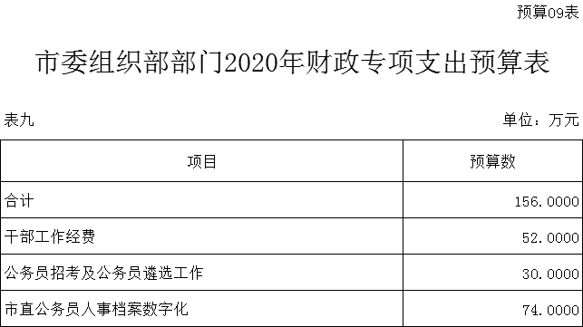 市委組織部本級收入預算金額610.62萬元,較上年增加141.37萬元,增加30.1%。預算經費增加的主要原因:一是機構改革單位人員增加導致相應人員經費和公用經費增加;二是2020年新增公務員檔案數字化建設工作,項目經費增加。