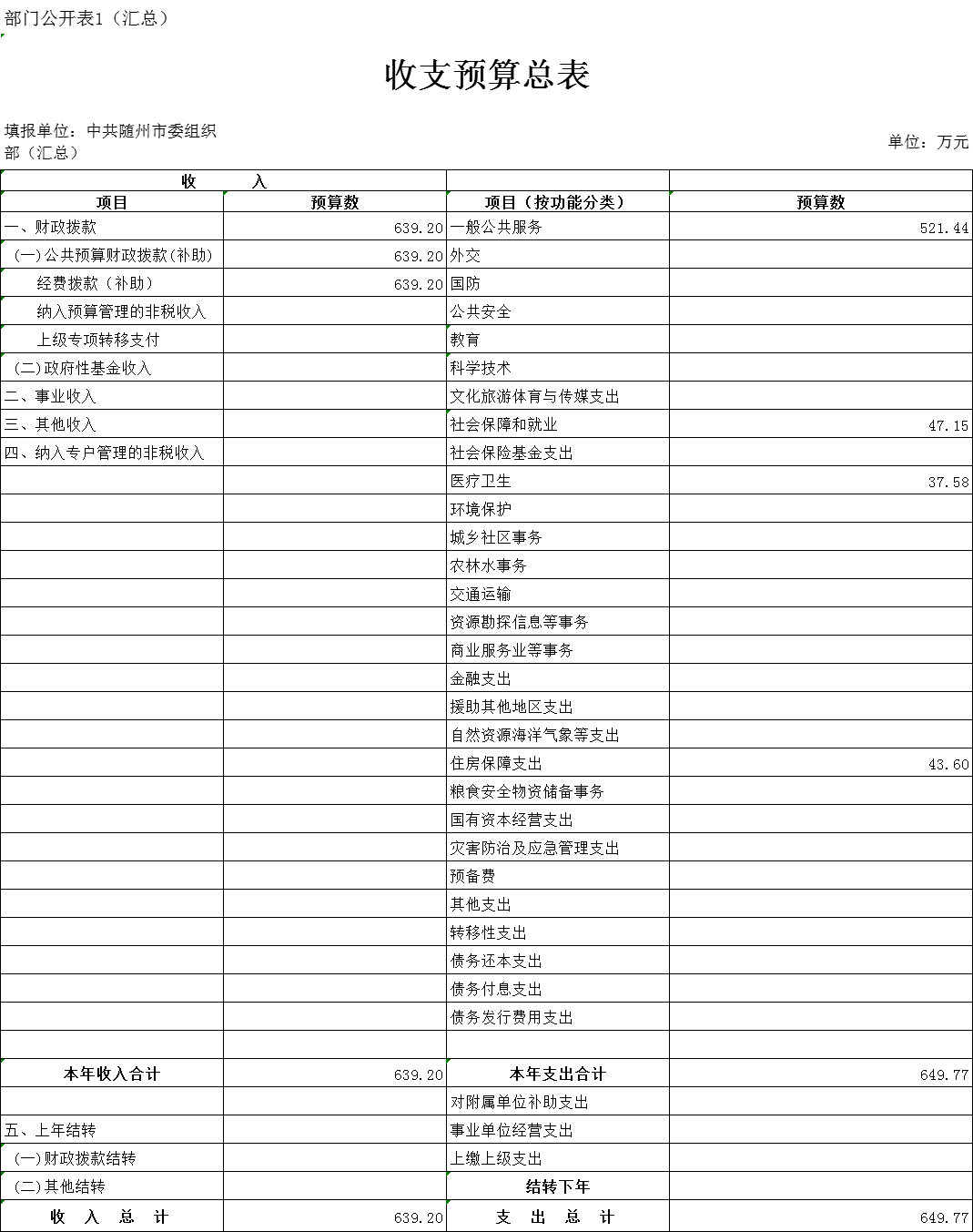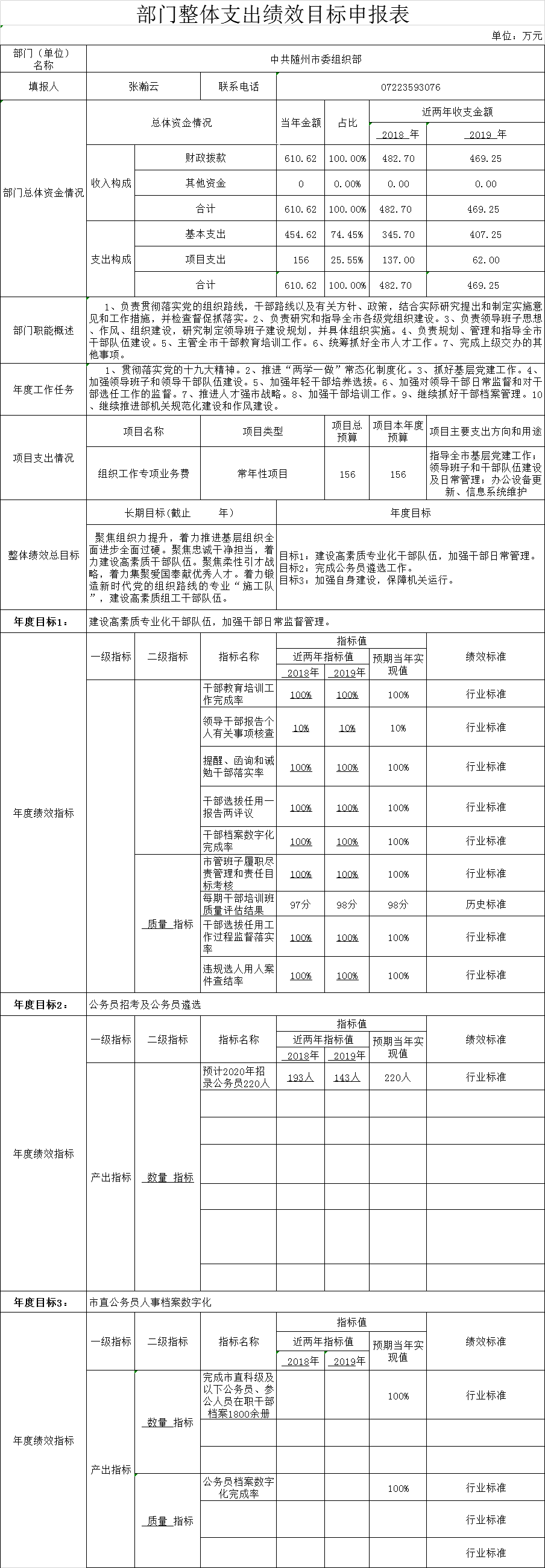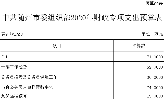 第二部分 隨州市委組織部2020年部門預算情況說明