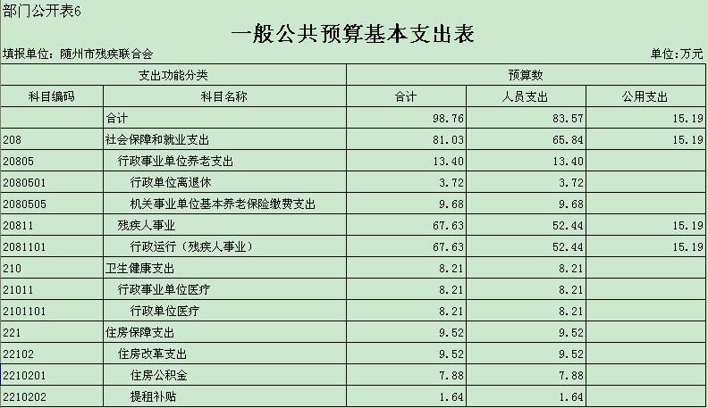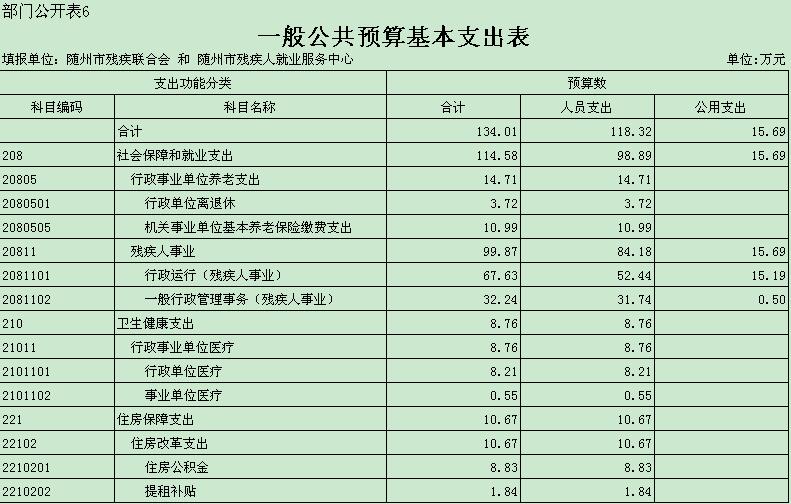 2081101 社會保障和就業支出(類)殘疾人事業(款)行政運行(項):指隨州市殘疾人聯合會的基本支出。