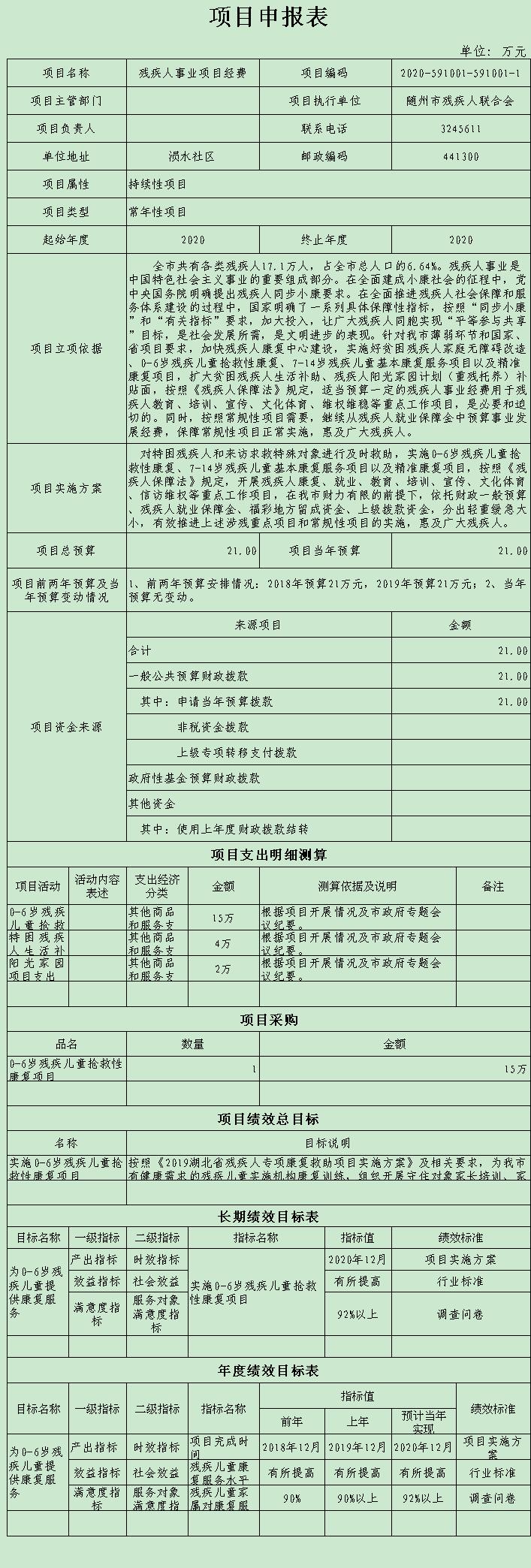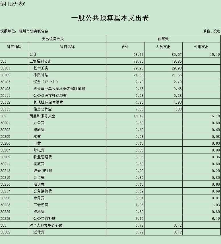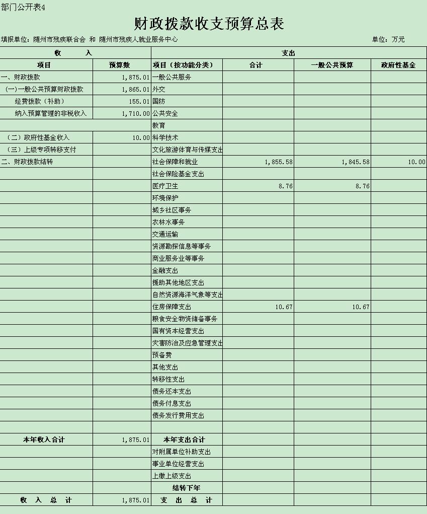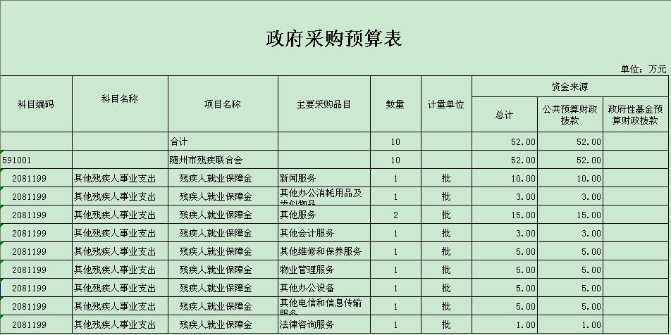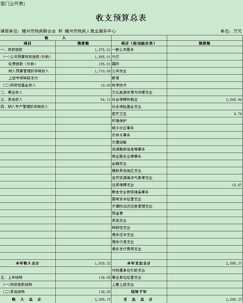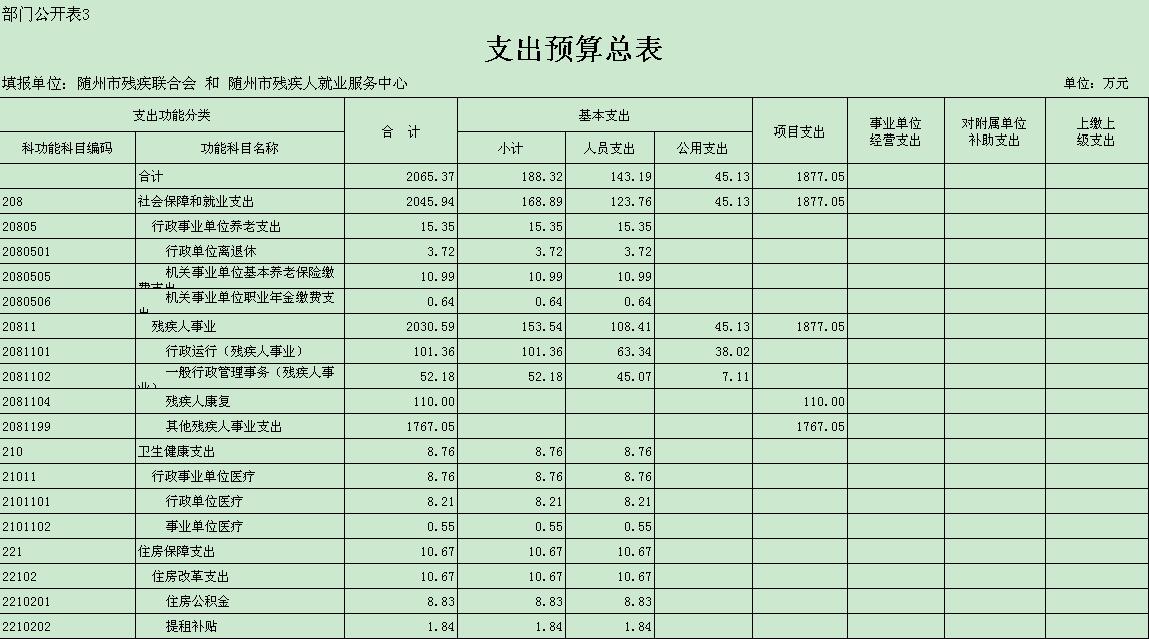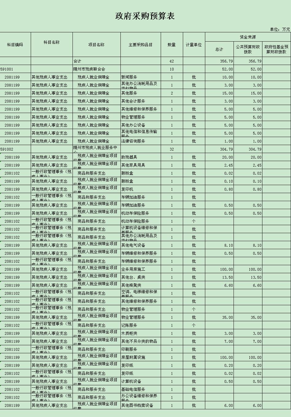 (一)隨州市殘聯(含隨州市殘疾人就業服務中心)匯總