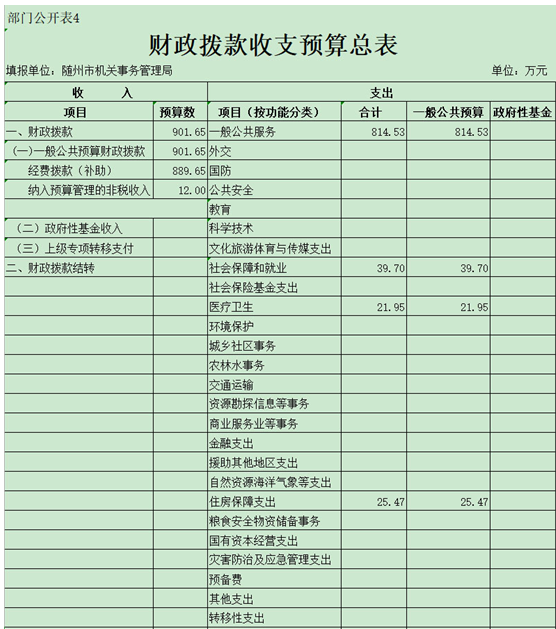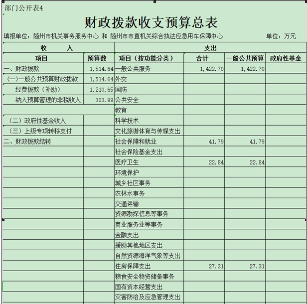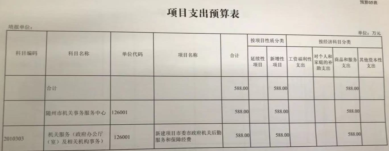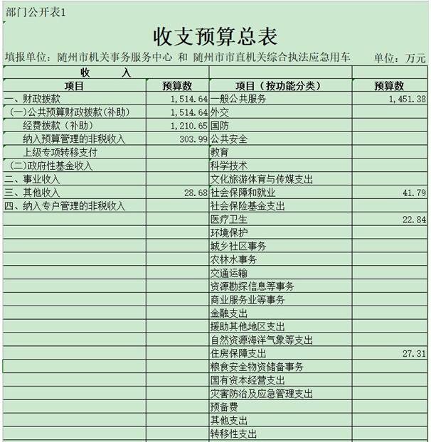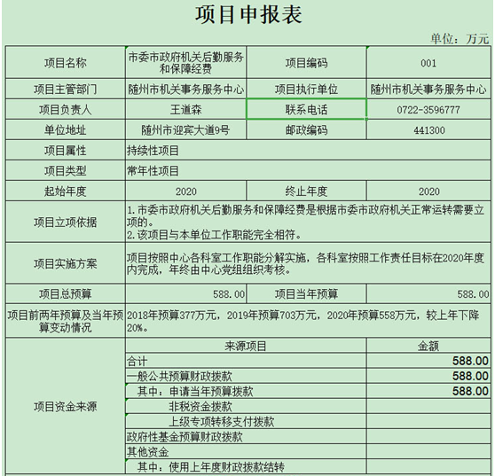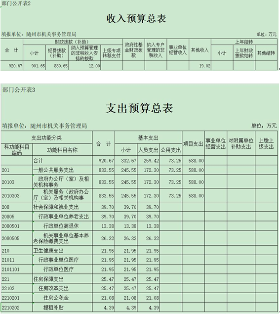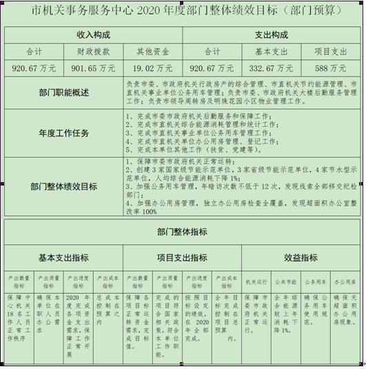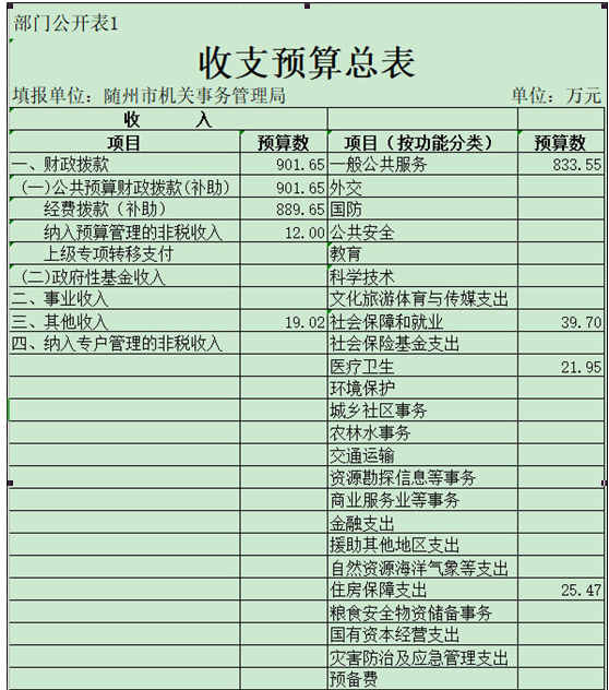 隨州市機關事務服務中心2020年部門匯總預算公開