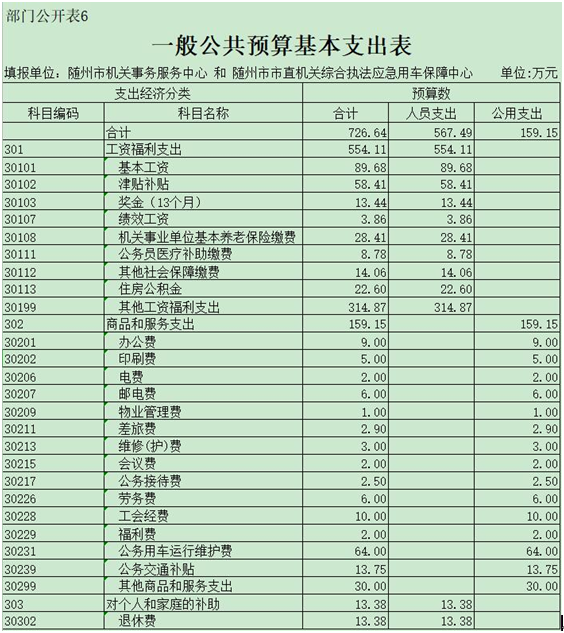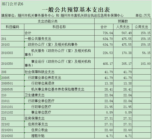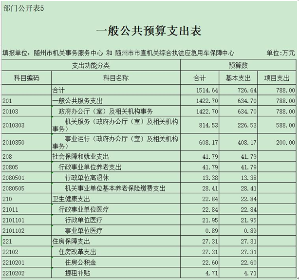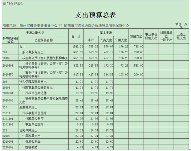 第三部分 隨州市機關事務服務中心2020年部門預算表