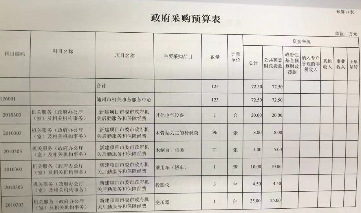 1、本級2020年預算采購總額229萬元,較上年306萬元減少77萬元,同比下降25.16%,下降的主要原因是本年項目支出規模較上年有所減少。其中,政府購買服務137萬元(聘請保安73萬元、保潔33萬元、廣場維護31萬元),國產計算機1套2萬元,會議中心投影儀4.5萬元,應急管理局變壓器25萬元,電梯20萬元,市委辦公樓監控17.5萬元,公務用車購置10萬元,市委常委會會議室、會議中心桌椅13萬元。