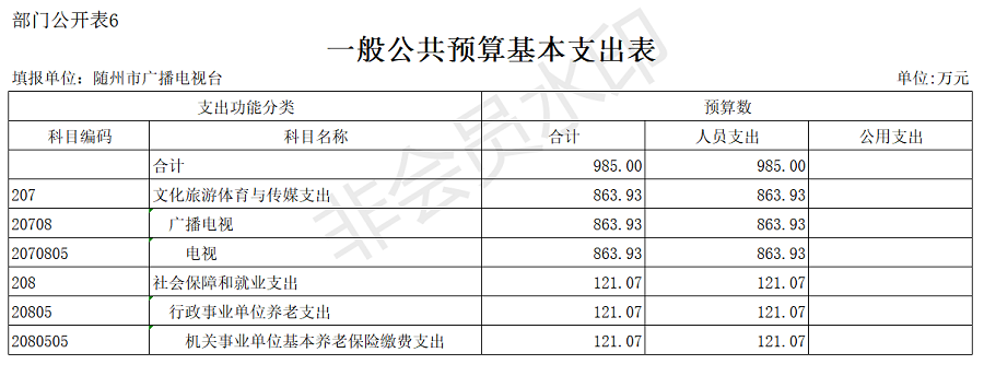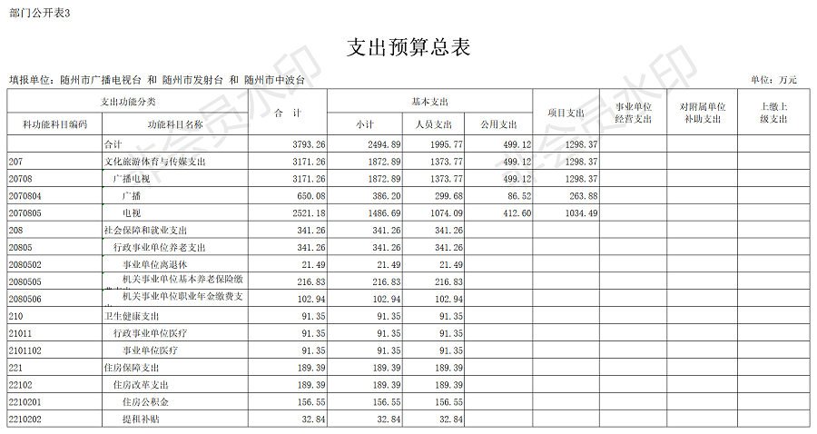 第三部分 隨州廣播電視臺2020年部門預算表