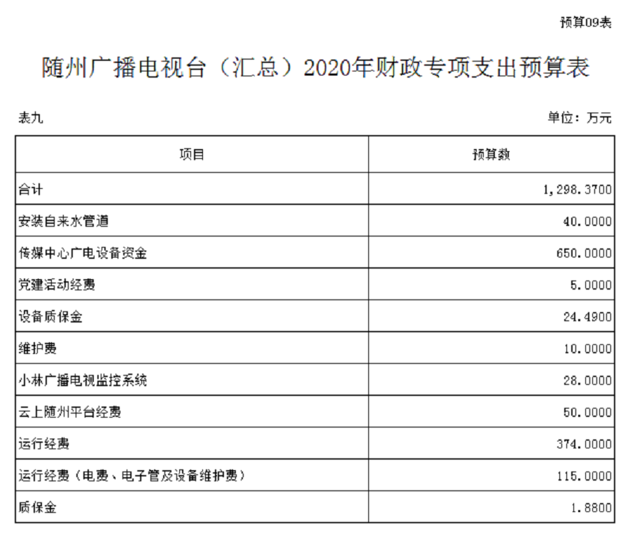 隨州廣播電視臺2020年部門預算