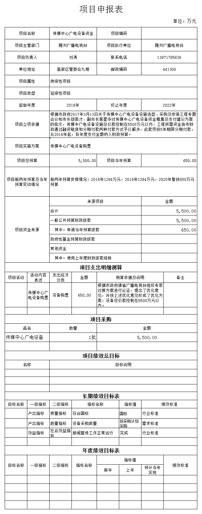 其中,傳媒中心廣播設備資金650萬元,是根據我臺隨州傳媒中心專業系統設備一期工程建設項目合同要求,該項目合同總金額28700732.00元(隨財采計【2018】1230號),2020年度我臺還需付款650萬元設備資金,我們將嚴格按照合同進行各項設備驗收,保證新聞宣傳工作正常運行。