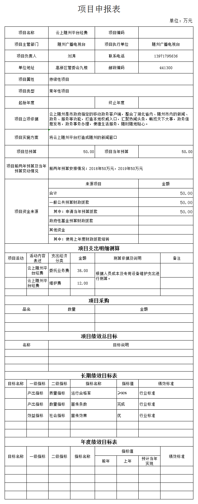 云上隨州平臺經費50萬元,其中上交省帶寬租用費38萬元,設備購置和維護費用12萬元。云上隨州是市政府指定的移動政務客戶端,整合了湖北省內、隨州市內的新聞、政務、服務等功能,打造本地權威入口,匯聚熱聞頭條,暢覽天下大事,政務信息發布、政務事務辦理、便捷生活服務,隨時隨地為廣大人民群眾服務。根據行業標準,設定質量指標為:運行合格率≥90%;數量指標為:宣傳條數達到文件要求;社會效益指標為:宣傳效果達到優。