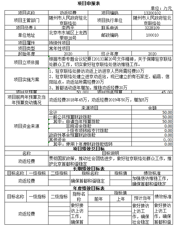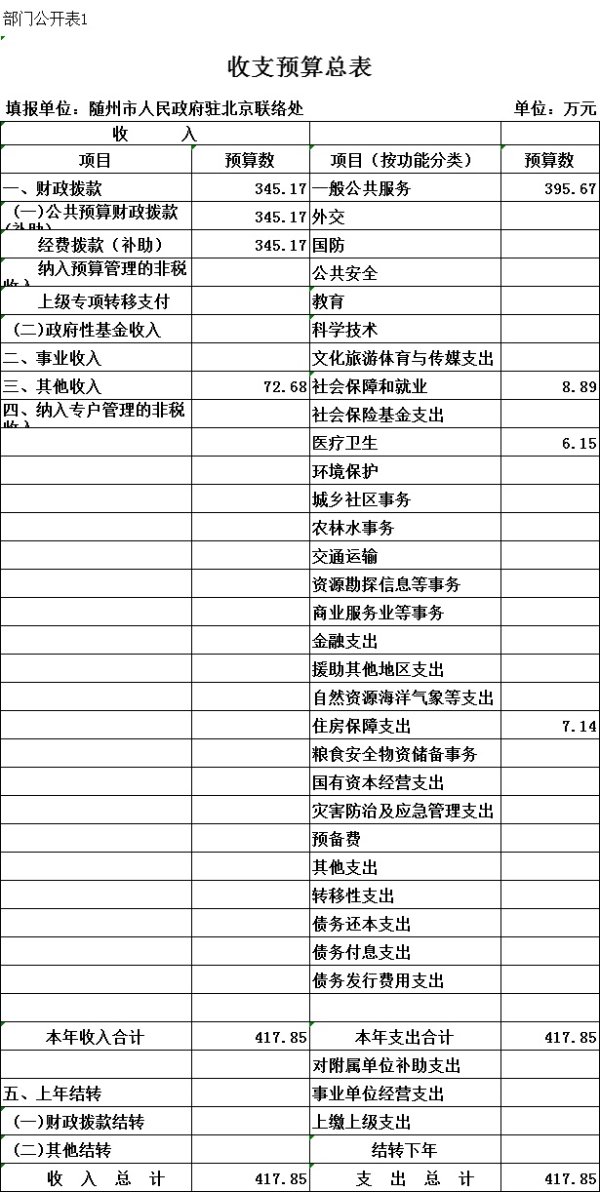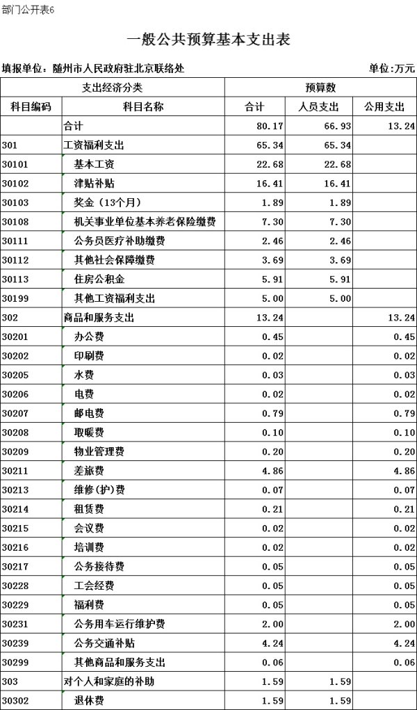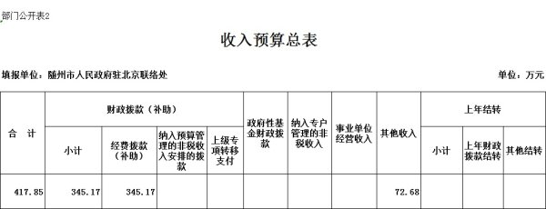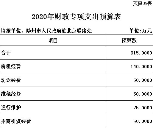 隨州市駐北京聯(lián)絡(luò)處2020年部門預(yù)算