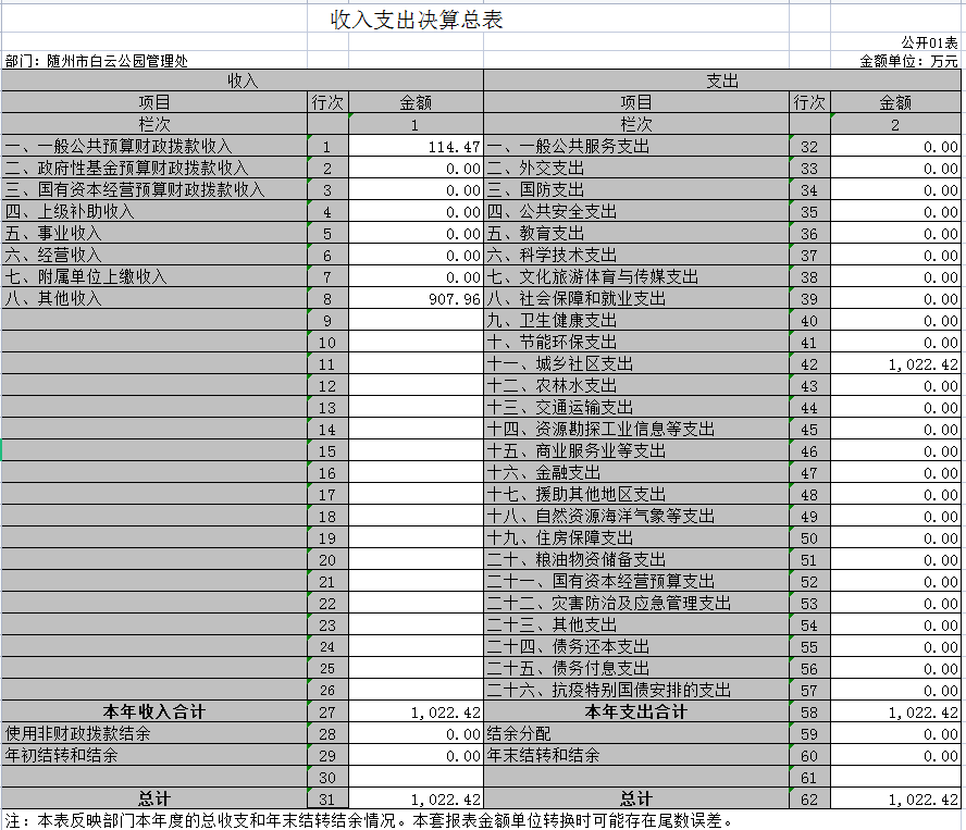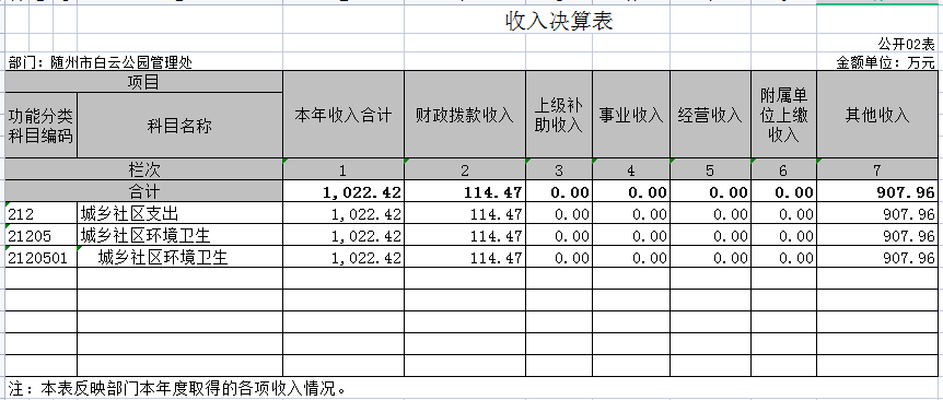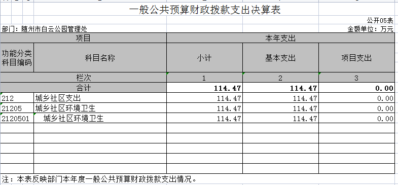第三部分隨州市白云公園管理處2020年部門(mén)決算表