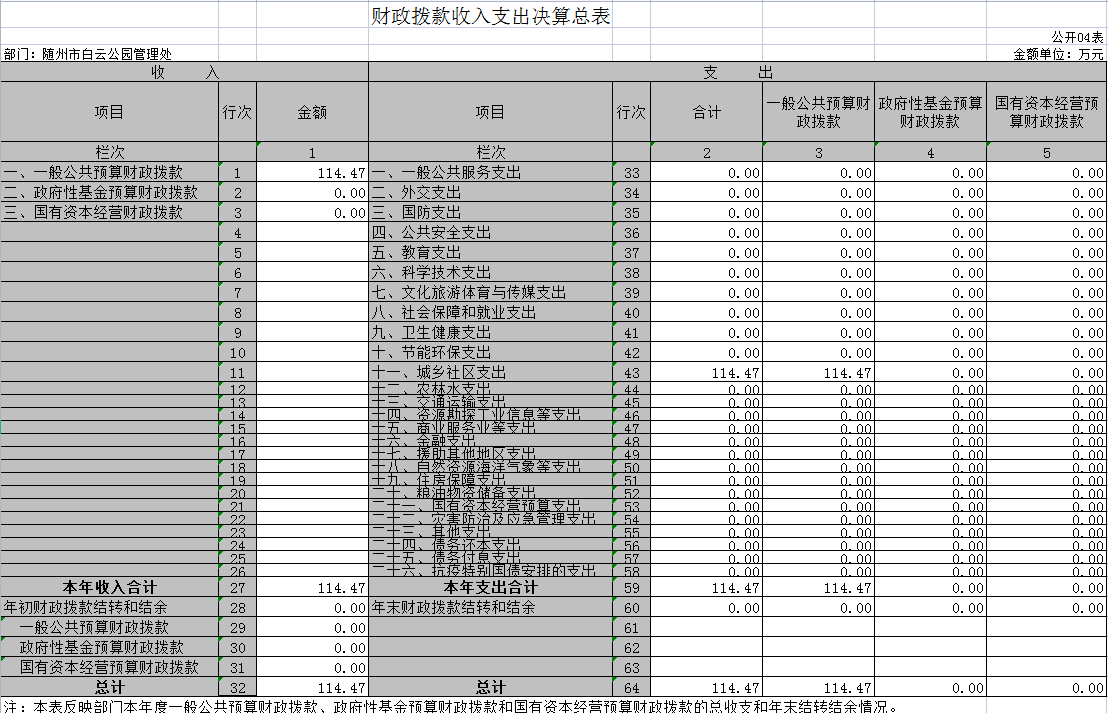 四、財(cái)政撥款收入支出決算總表(公開(kāi)表04表)