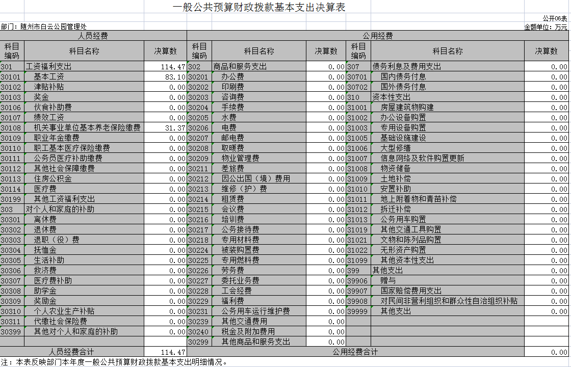 第三部分:白云公園部門(mén)2020年部門(mén)決算表
